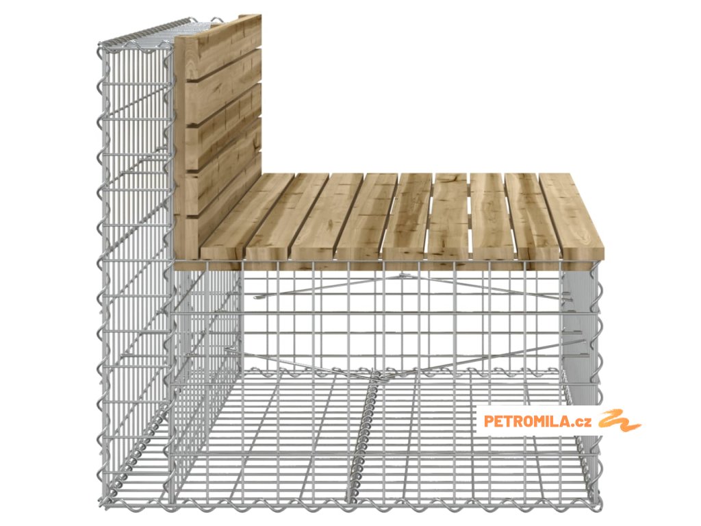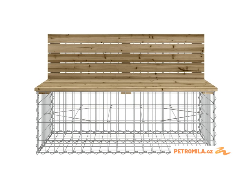 - Robustní a stabilní základna: Tato venkovní lavice je vybavena základnou z pozinkovaného ocelového gabionového koše, který je navržen tak, aby jej bylo možné naplnit kameny a štěrkem pro atraktivnější vzhled. Mřížku gabionového koše tvoří podélné a svislé drátky, které jsou navíc v každém spoji svařené pro lepší stabilitu.