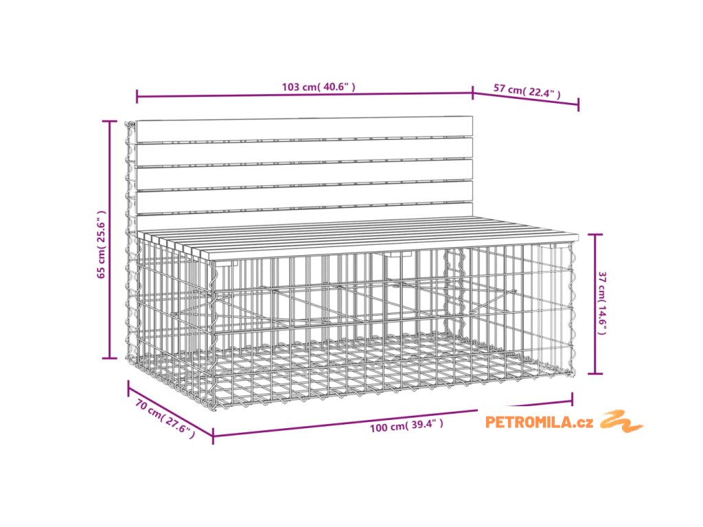 Zahradní lavice gabionový design 103 x 70 x 65 cm borové dřevo