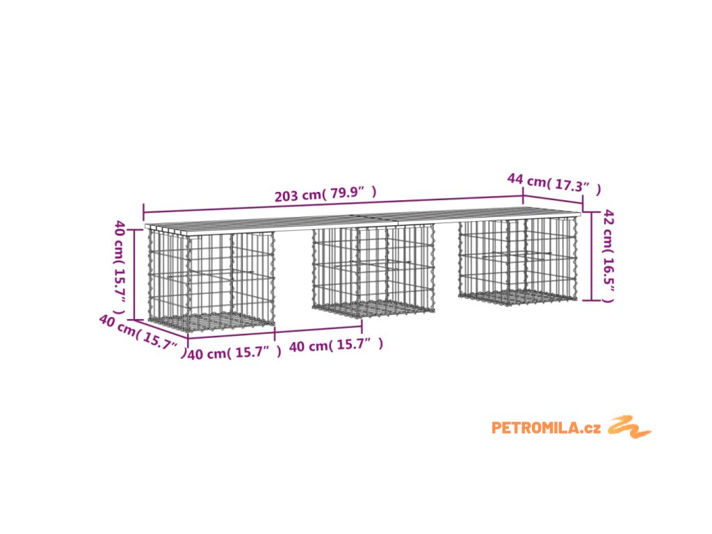 Zahradní lavice gabionový design 203 x 44 x 42 cm borové dřevo