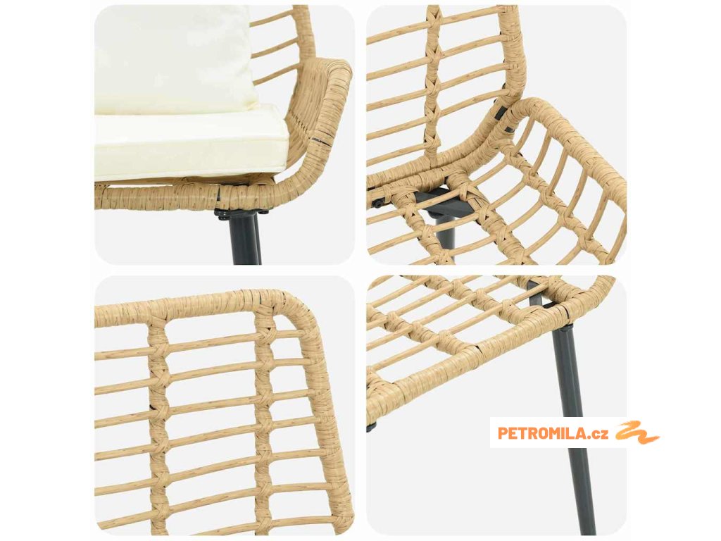 - Fajn Materiály: Vyrobeno z odolného polyratanu a silné oceli, tenhle set je koncipovanej na venek. Výplet z polyratanu vypadá skvěle a odolává vlhkosti, takže si zachovává svůj vzhled po celou sezónu. Pevný ocelový rám ti dává stabilitu, takže si můžeš skvěle odpočinout.