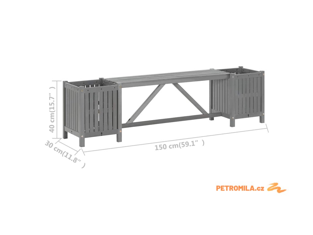 Zahradní lavice se 2 truhlíky 150 cm masivní akácie šedá
