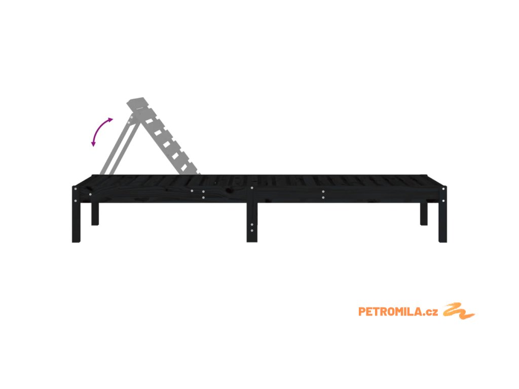 Zahradní lehátka 2 ks černá 199,5x60x74 cm masivní borové dřevo