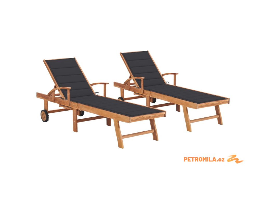 Zahradní lehátka 2 ks s antracitovou poduškou masivní teak