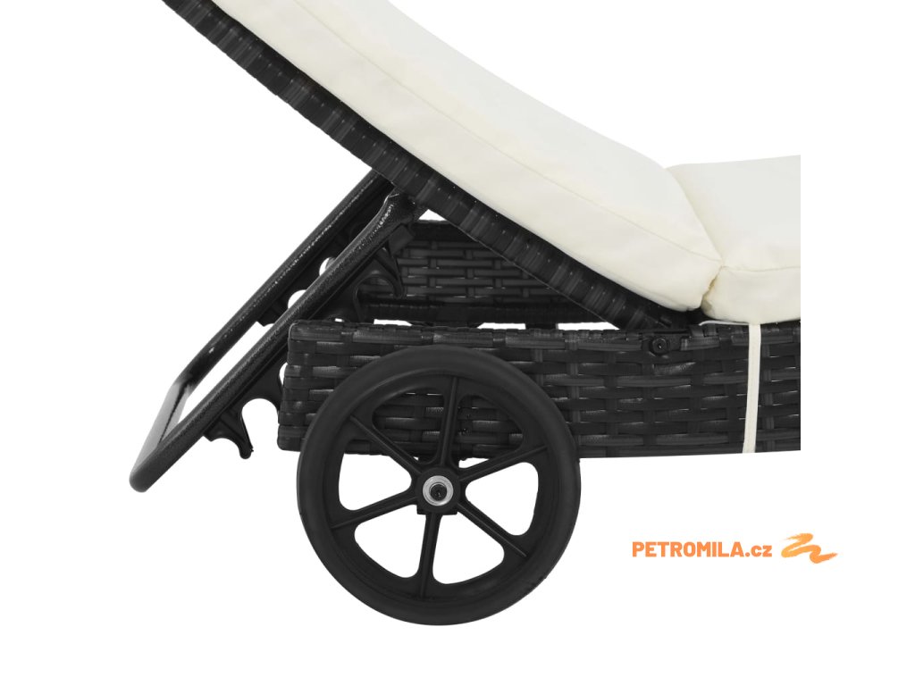 Zahradní lehátka 2 ks s kolečky a poduškami polyratan černá