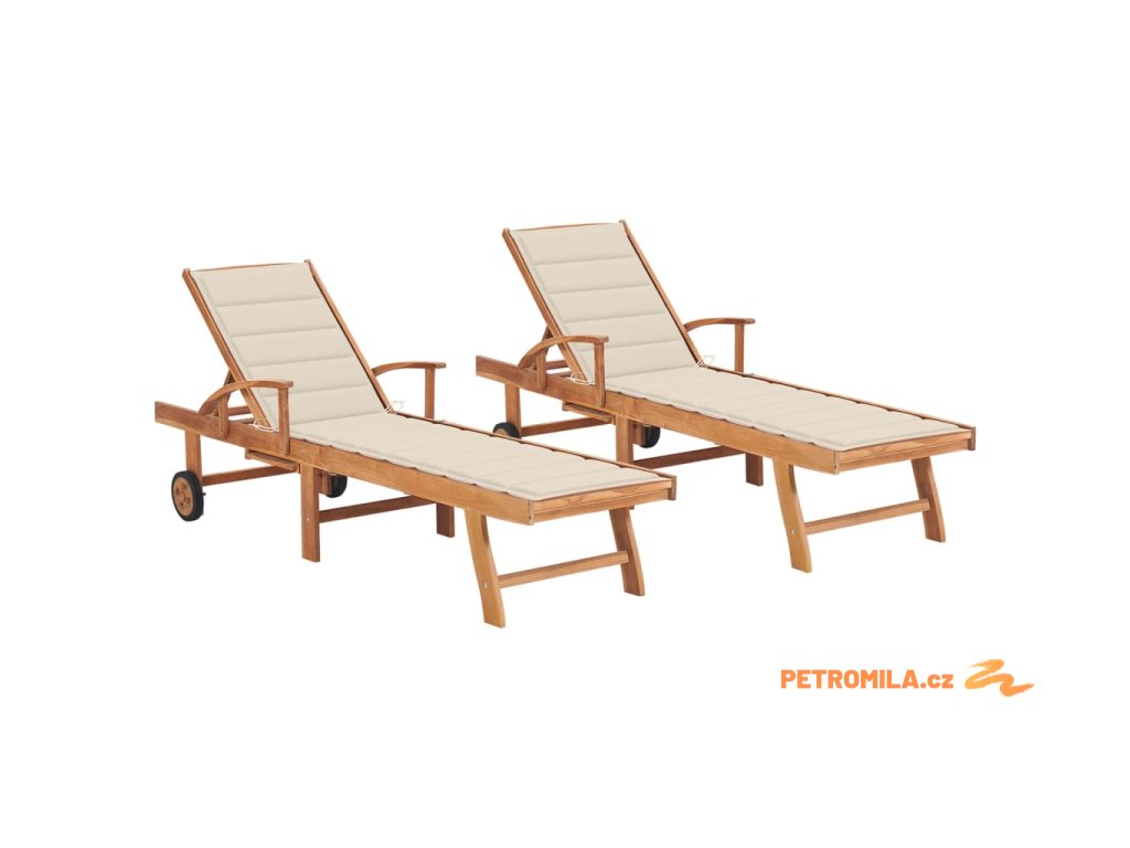 Zahradní lehátka 2 ks s krémovou poduškou masivní teak