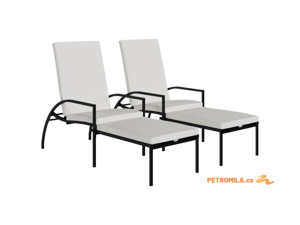 Zahradní lehátka 2 ks s podnožkou PE ratan černá