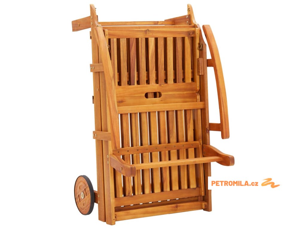 Zahradní lehátko je vyrobené z masivního akáciového dřeva a dobře odolává povětrnostním vlivům, má dlouhou životnost a je vhodné pro venkovní použití. Je vybavené kolečky, takže ho snadno přesunete, kam potřebujete. Opěradlo a opěrka nohou, které jsou nastavitelné od zcela vzpřímeného sedu až po vodorovnou polohu vleže, vám poskytnou maximální pohodlí. Když ho nepoužíváte, lze lehátko sklopit. Přiložená poduška není pouze praktickým doplňkem, ale má také dekorativní funkci.