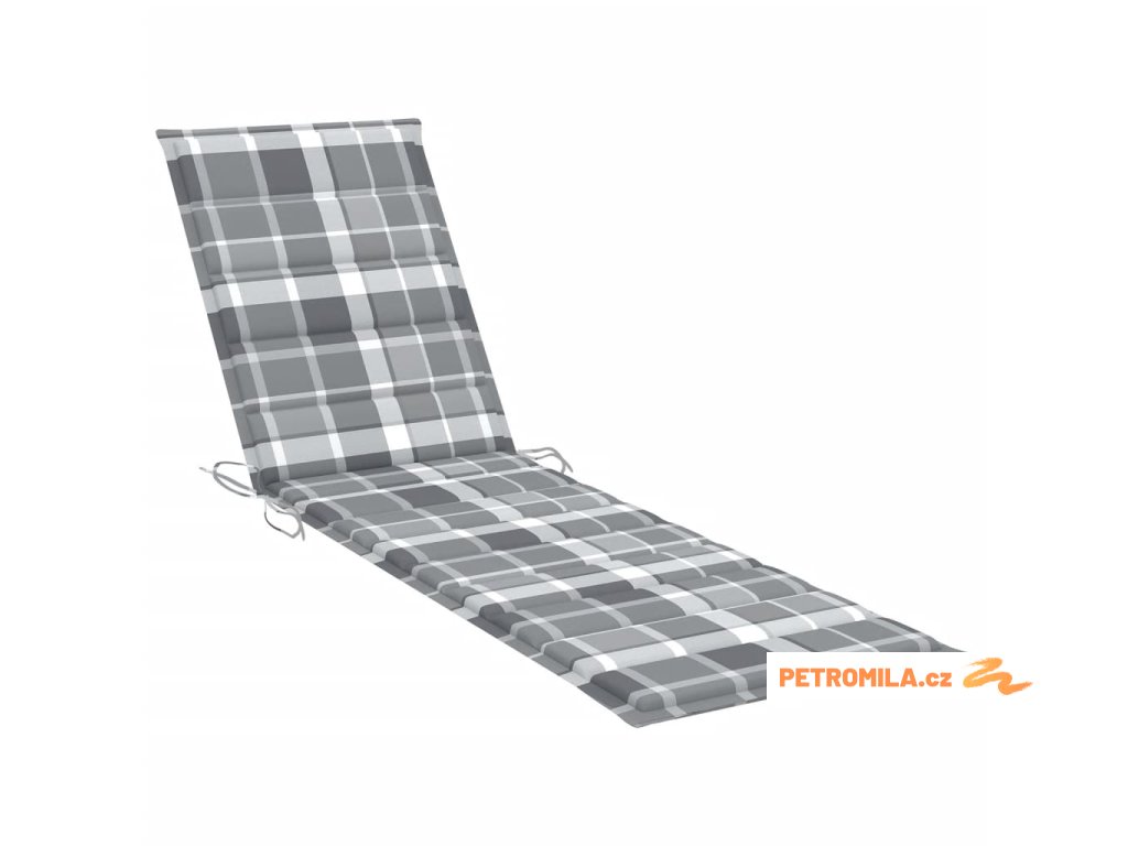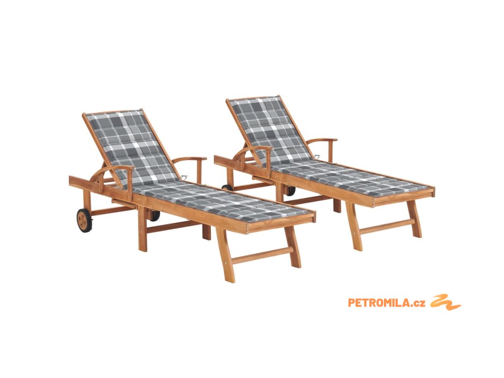 Zahradní lehátka 2 ks s šedou károvanou poduškou masivní teak
