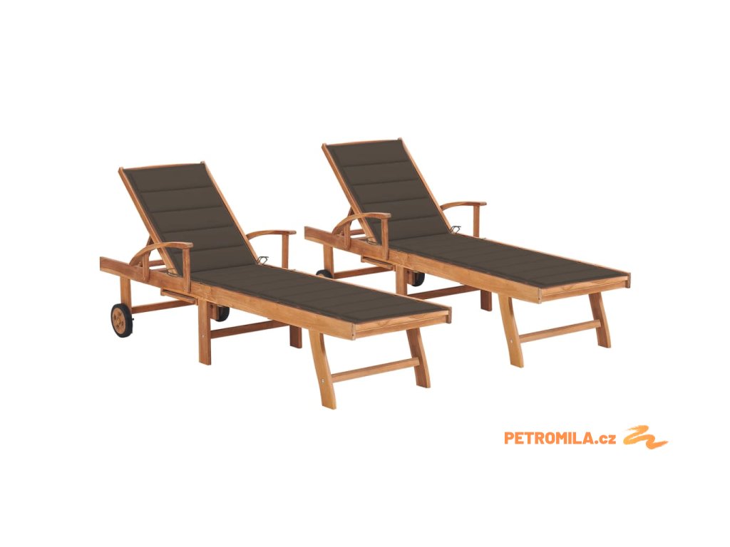Zahradní lehátka 2 ks s taupe poduškou masivní teak