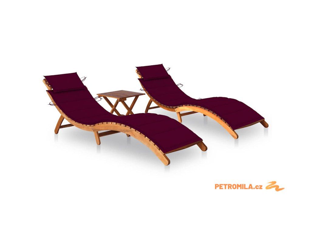 Zahradní lehátka 2 ks se stolkem a poduškami masivní akácie