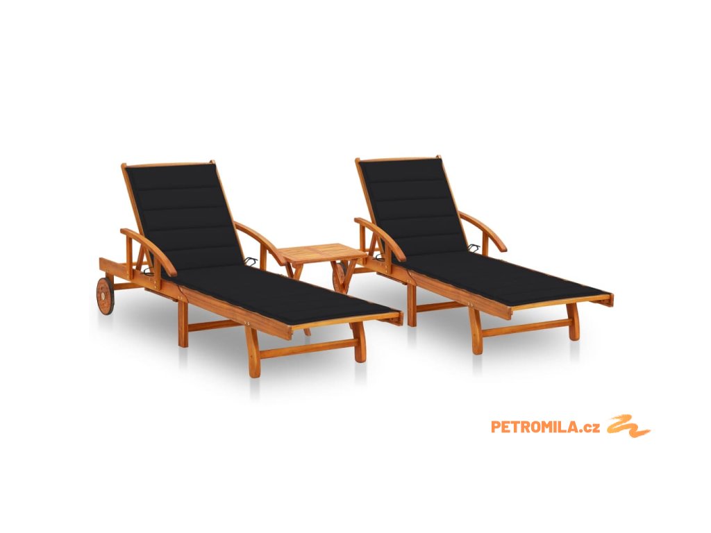 Zahradní lehátka 2 ks se stolkem a poduškami masivní akácie