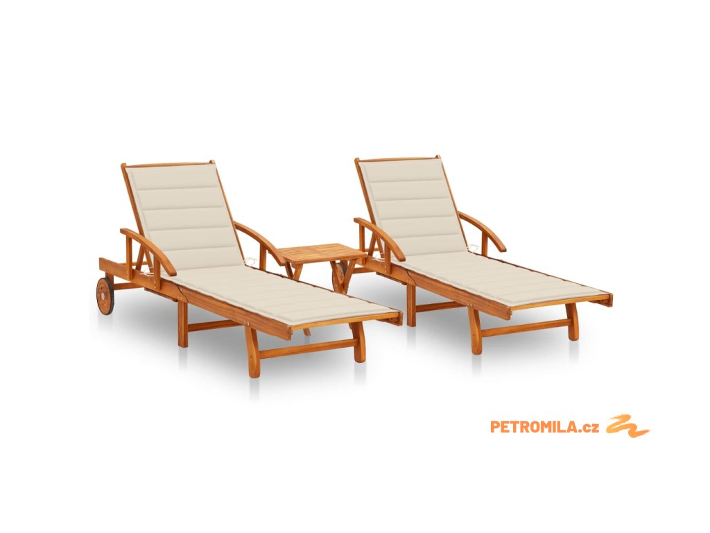 Zahradní lehátka 2 ks se stolkem a poduškami masivní akácie
