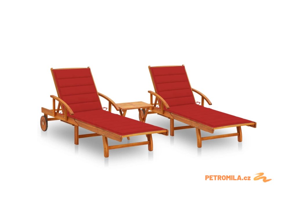 Zahradní lehátka 2 ks se stolkem a poduškami masivní akácie