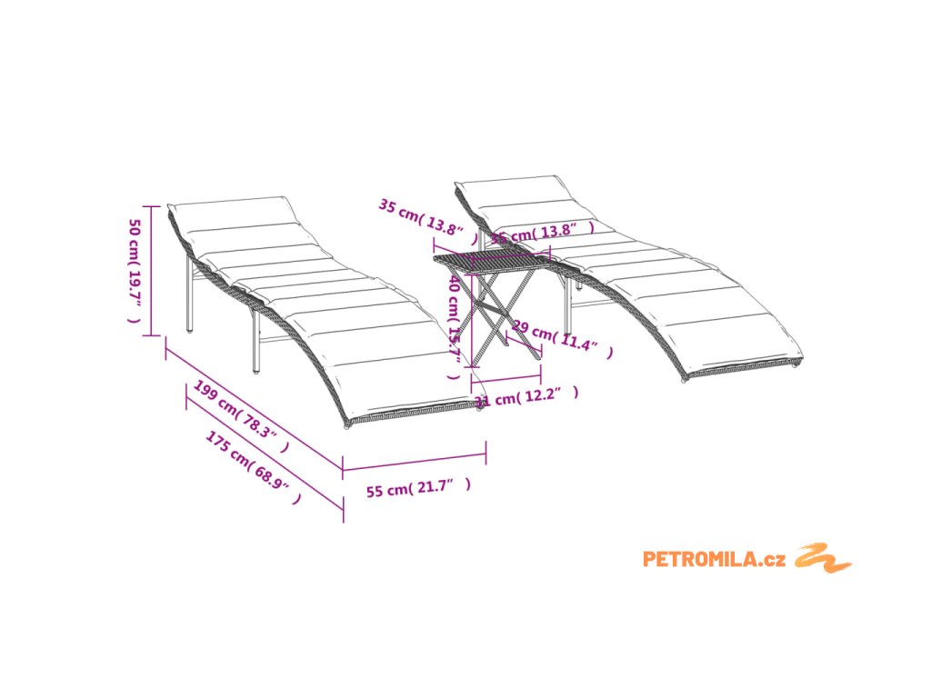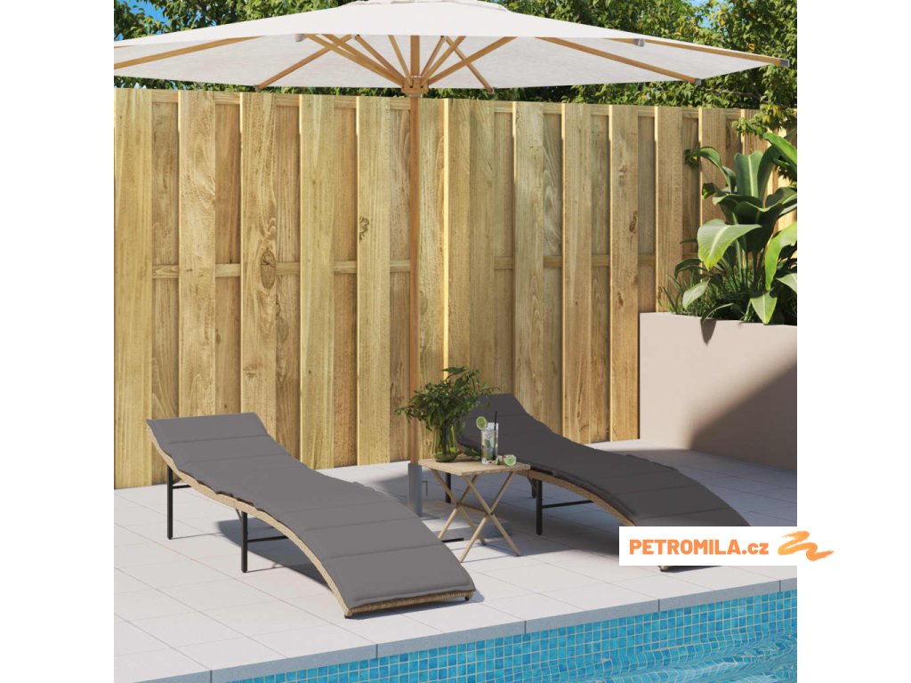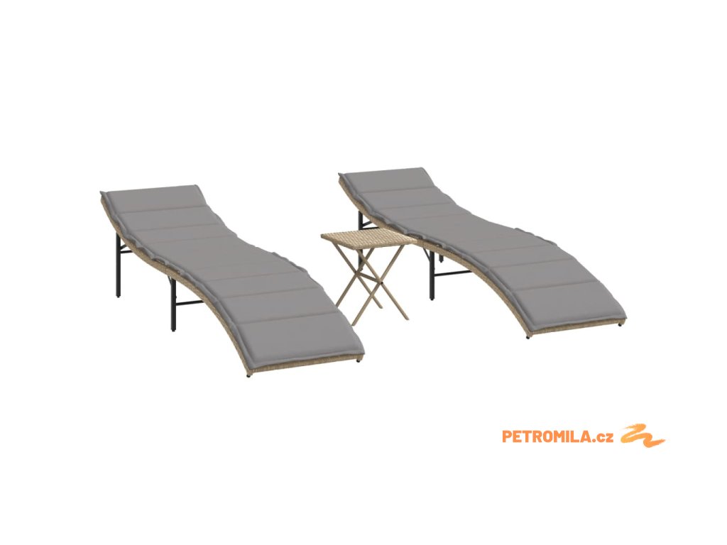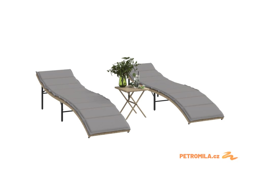 Zahradní lehátka 2 ks se stolkem béžová polyratan
