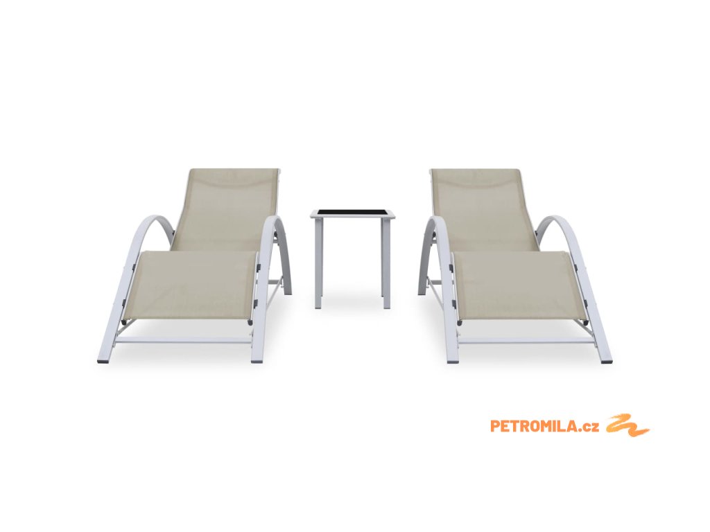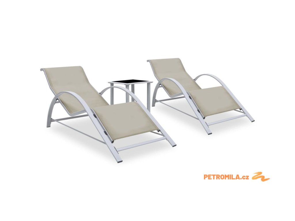 Zahradní lehátka 2 ks se stolkem hliníková krémová
