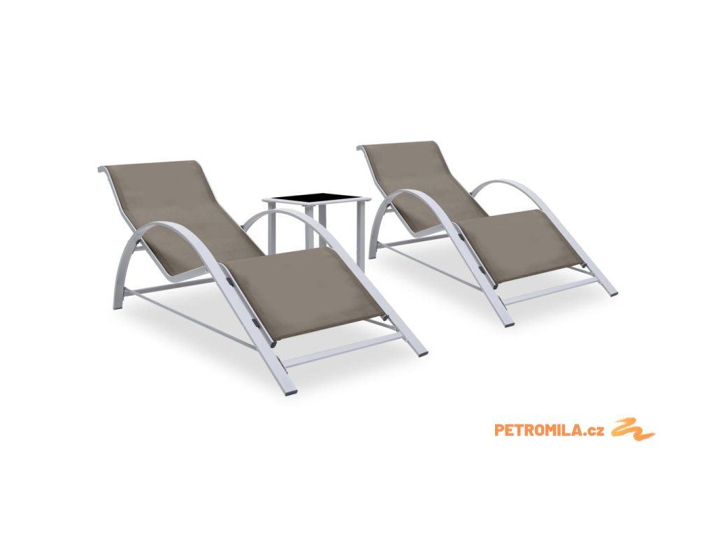 Zahradní lehátka 2 ks se stolkem hliníková taupe
