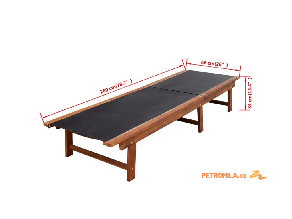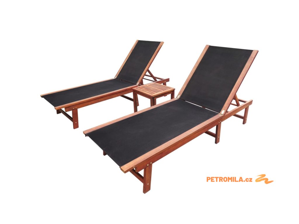 Zahradní lehátka 2 ks se stolkem masivní akácie a textilen