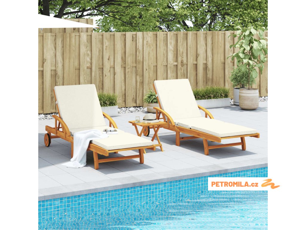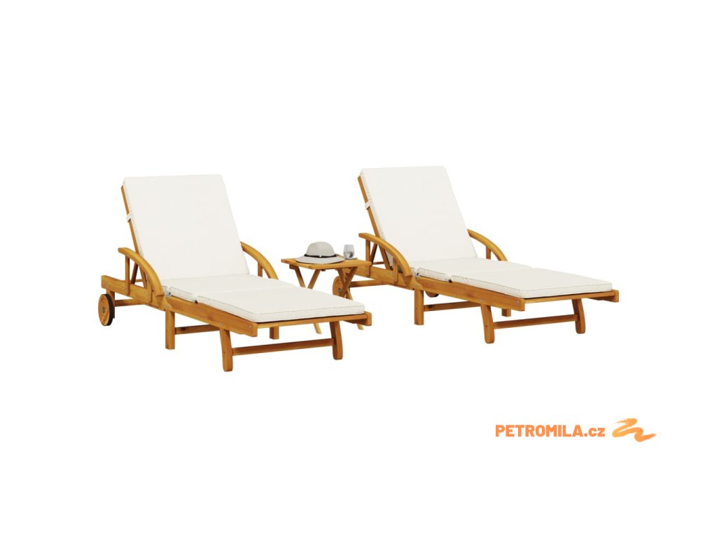 Zahradní lehátka 2 ks se stolkem masivní akáciové dřevo