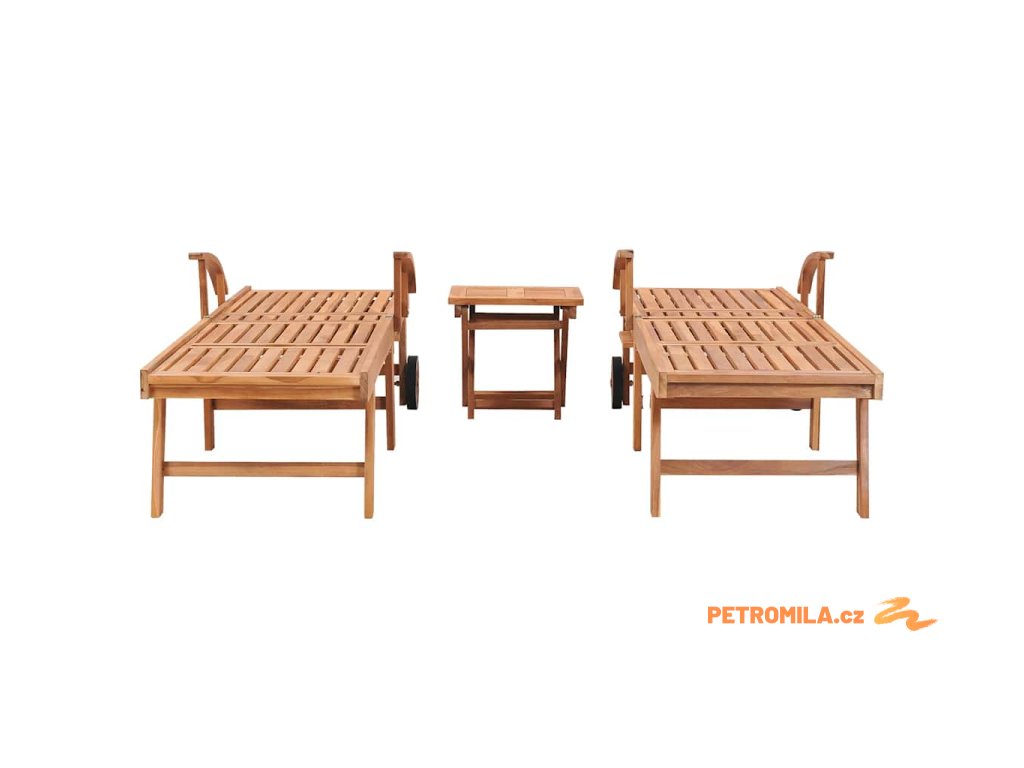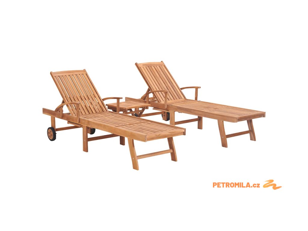 Zahradní lehátka 2 ks se stolkem masivní teak