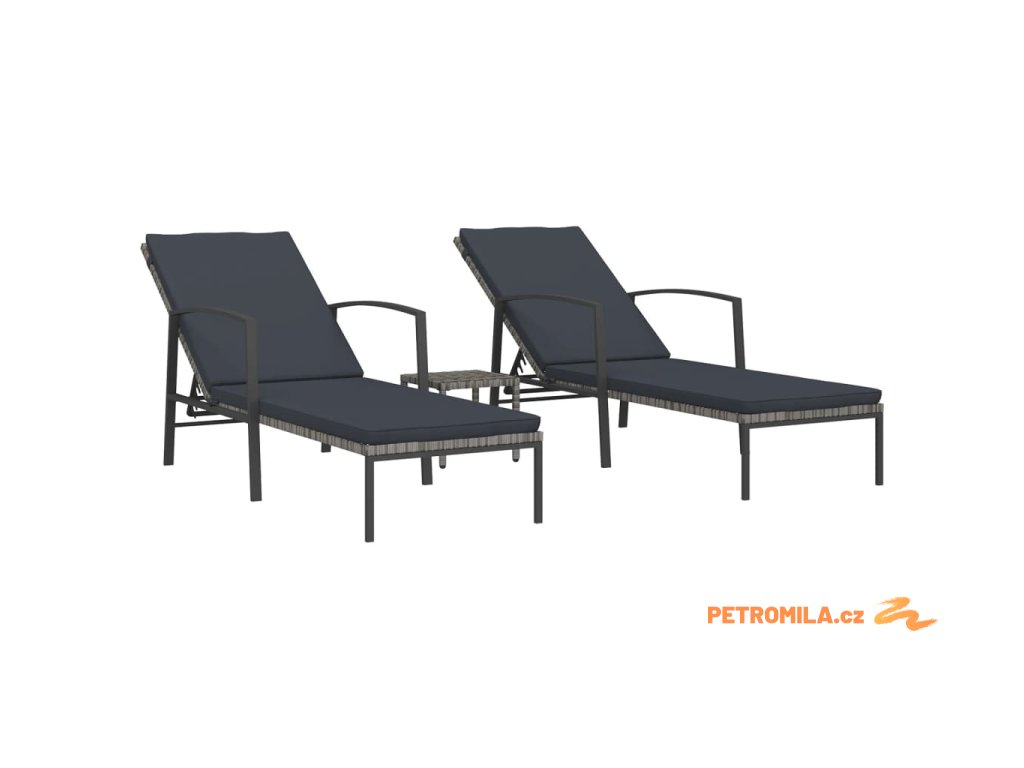 Zahradní lehátka 2 ks se stolkem polyratan šedá