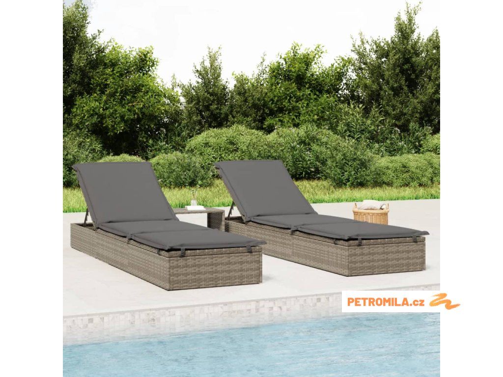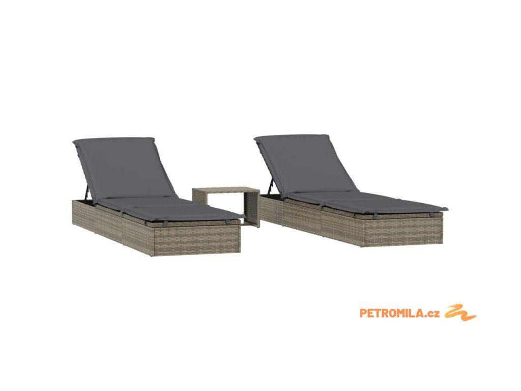 Zahradní lehátka 2 ks se stolkem šedá polyratan