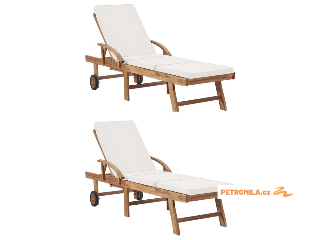 Zahradní lehátka s poduškami 2 ks masivní teak krémová