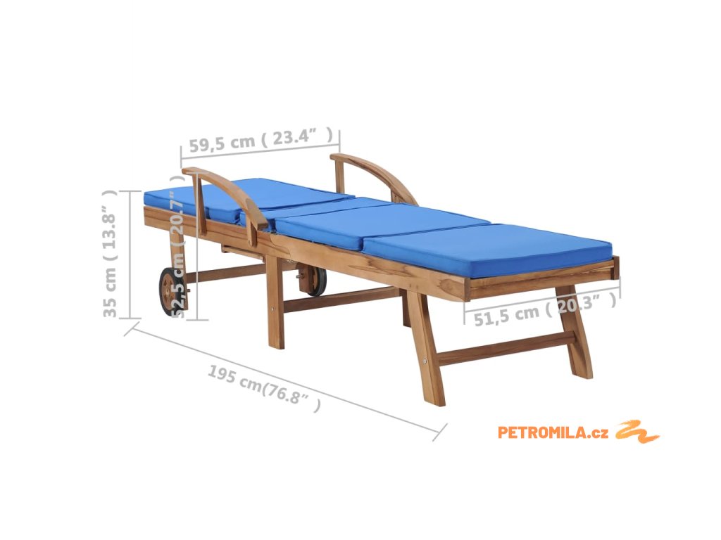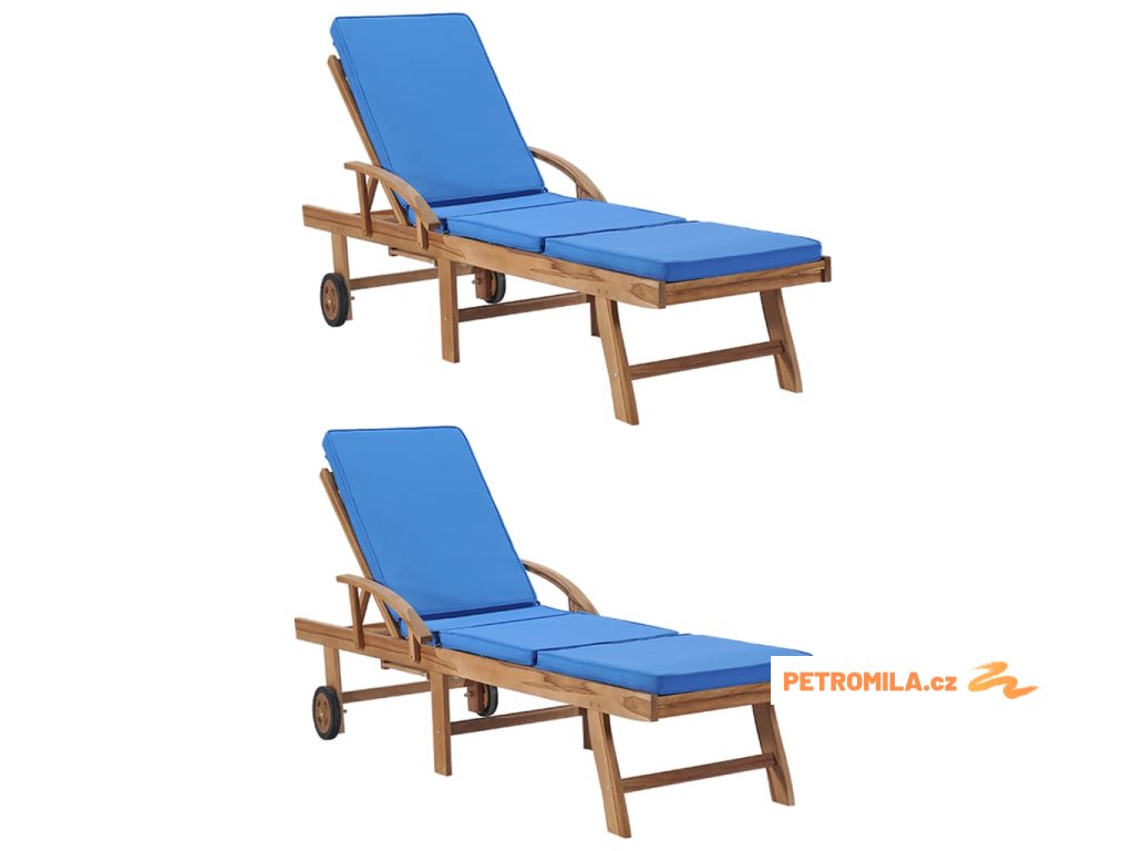 Zahradní lehátka s poduškami 2 ks masivní teak modrá