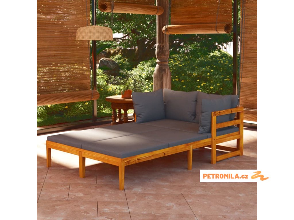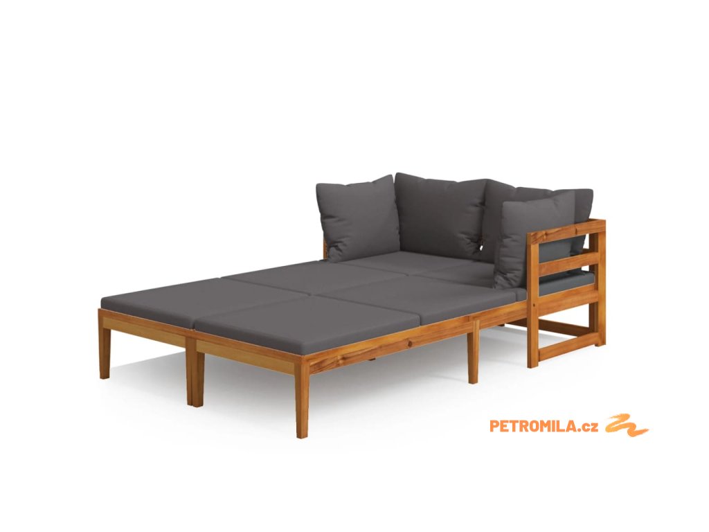 Zahradní lehátka s tmavě šedými poduškami 2 ks akáciové dřevo