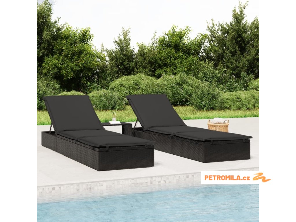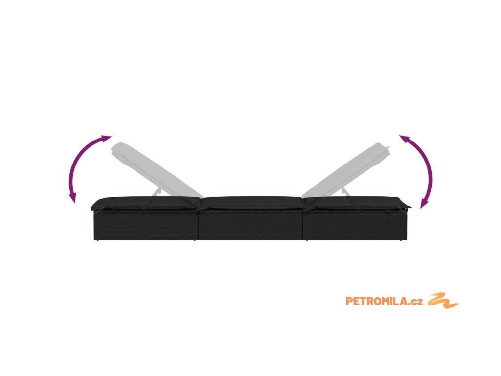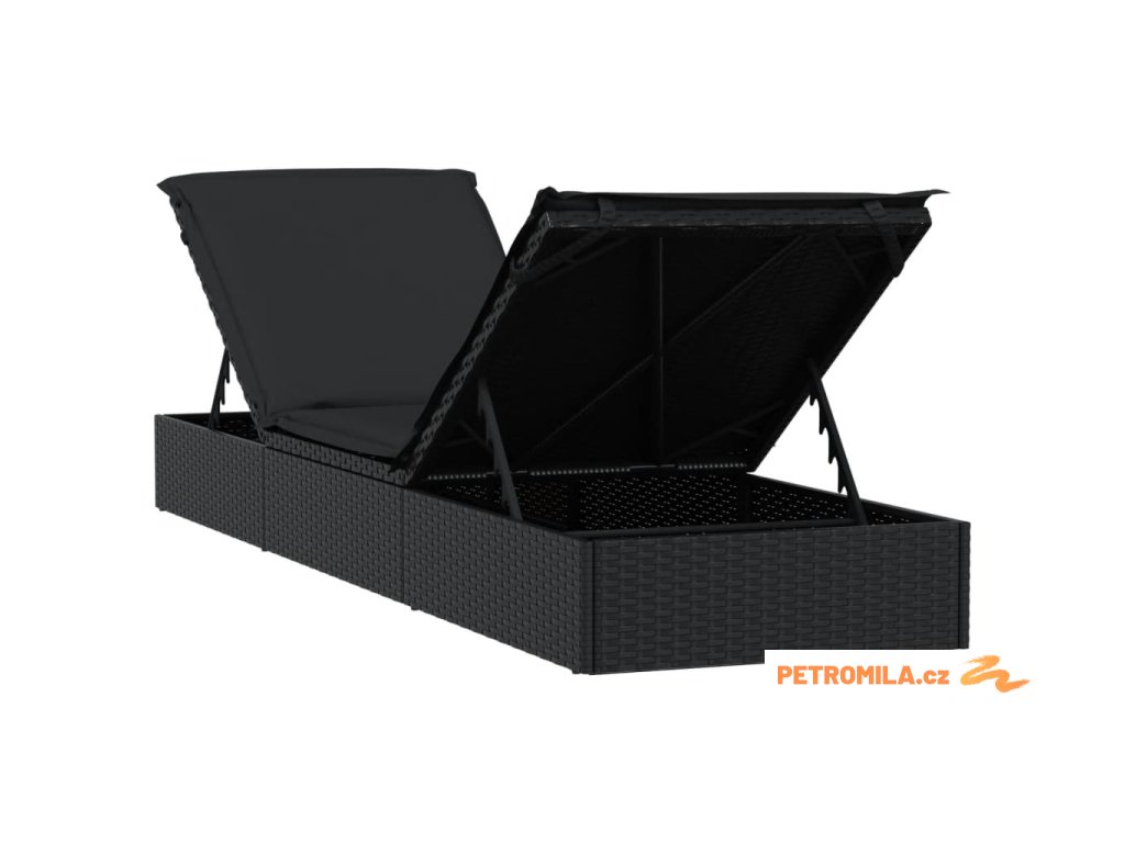 Zahradní lehátko 1 ks s poduškou černé 201x55x62 cm polyratan