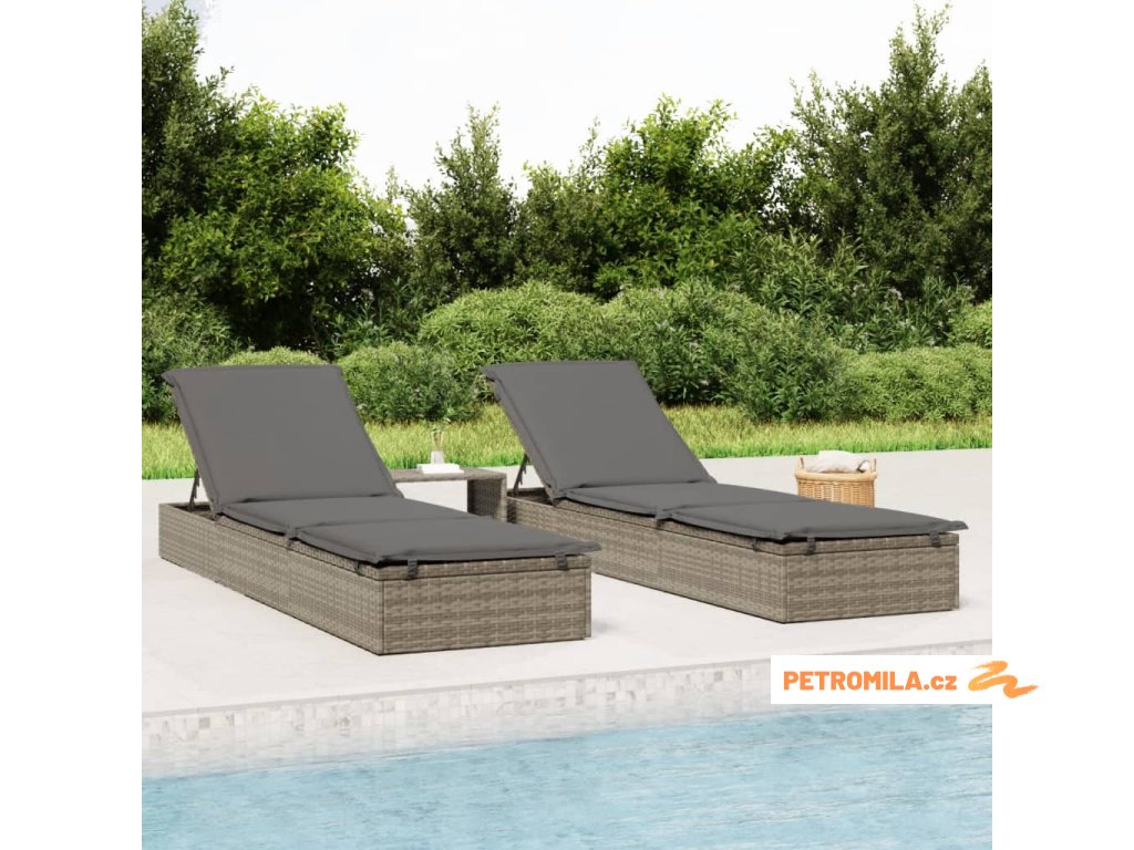 Zahradní lehátko 1 ks s poduškou šedé 201x55x62 cm polyratan