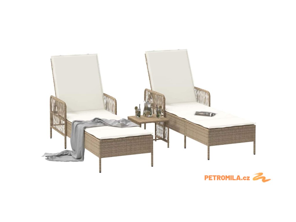 Zahradní lehátko 2-osoba 2 pcs Béžová 35 x 35 x 32cm polyratan