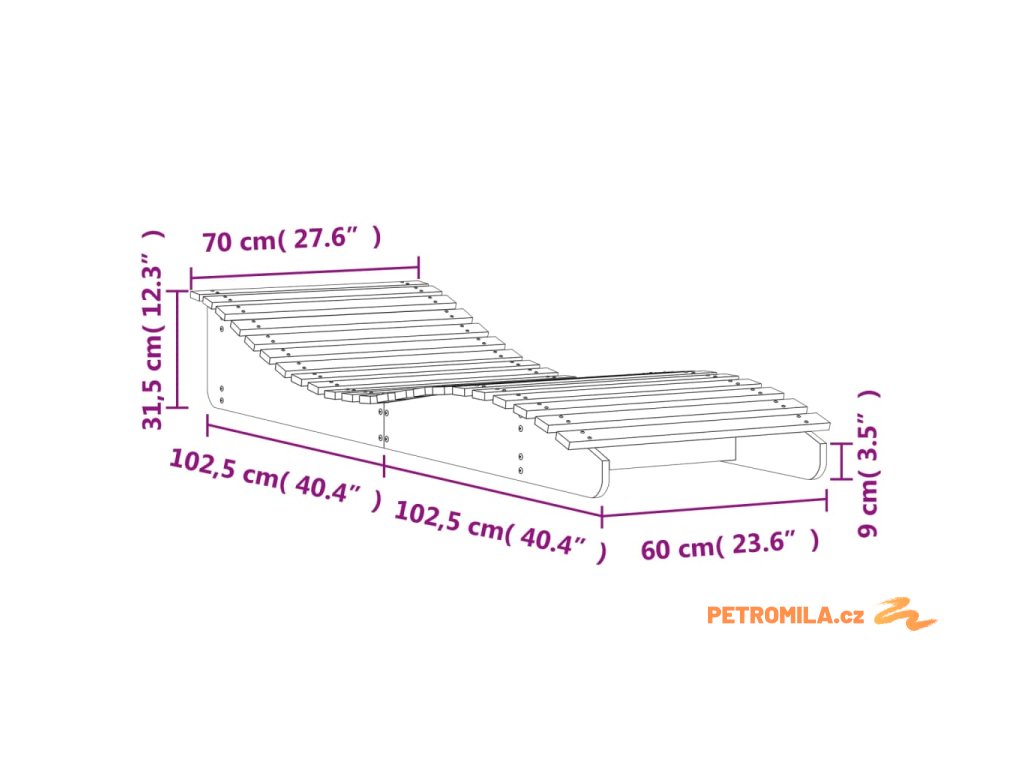 Zahradní lehátko 205 x 70 x 31,5 cm masivní borové dřevo