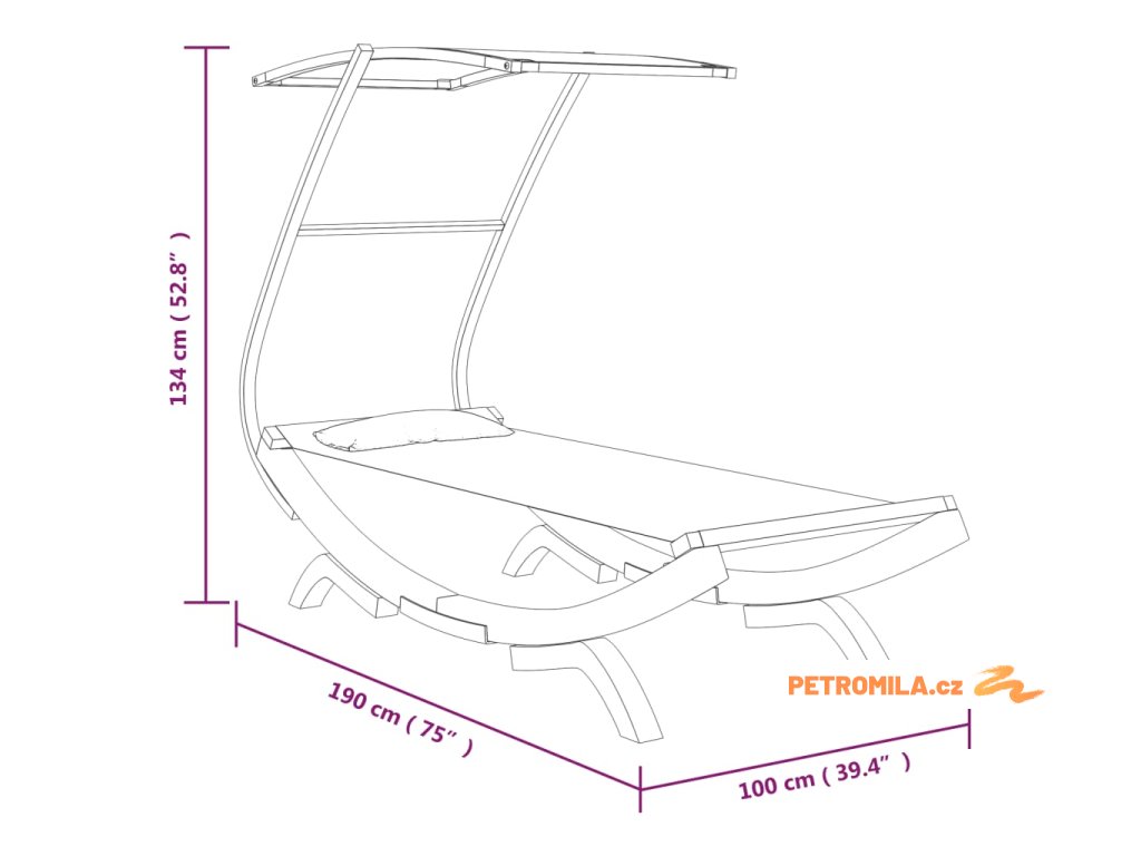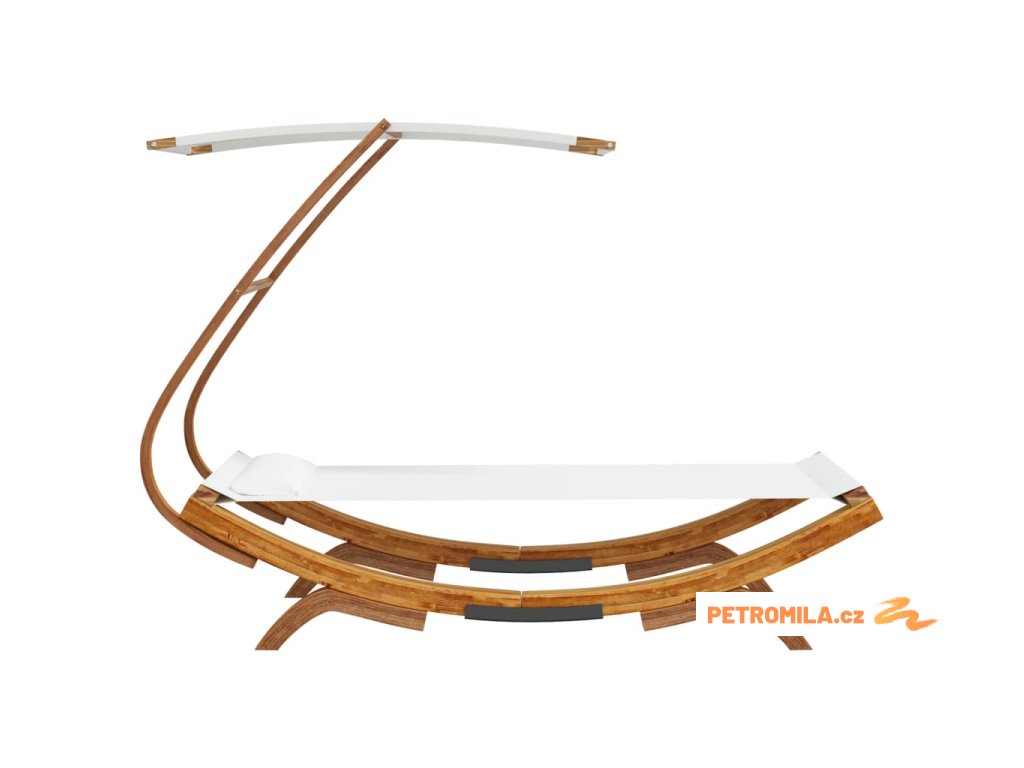 Tato zahradní postel má pevný rám z masivního ohýbaného dřeva, takže je stabilní a odolná. Lehátko a polštářek jsou vyrobené z textilu, který se snadno čistí, a je navíc velmi pohodlný. Stříška vás při relaxaci chrání před přímým sluncem.