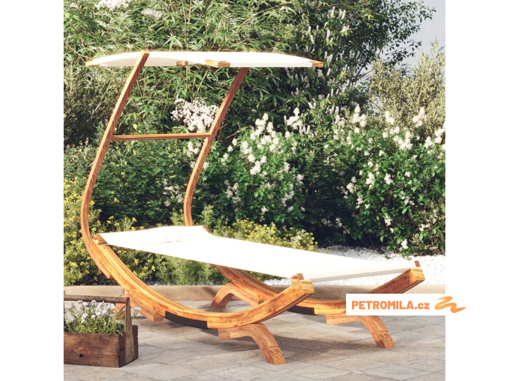 Zahradní lehátko a stříška 100x190x134 cm ohýbané dřevo krémové