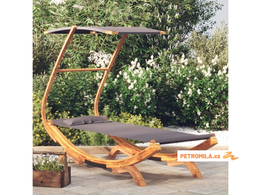 Zahradní lehátko a stříška 100x190x134cm ohýbané dřevo antracit