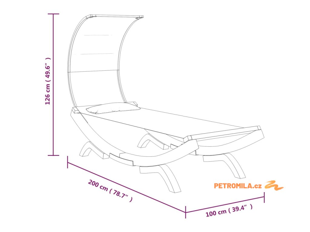 Zahradní lehátko a stříška 100x200x126cm ohýbané dřevo antracit
