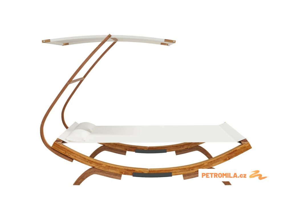 Tato zahradní postel má pevný rám z masivního ohýbaného dřeva, takže je stabilní a odolná. Lehátko a polštářky jsou vyrobené z textilu, který se snadno čistí, a je navíc velmi pohodlný. Stříška vás při relaxaci chrání před přímým sluncem.