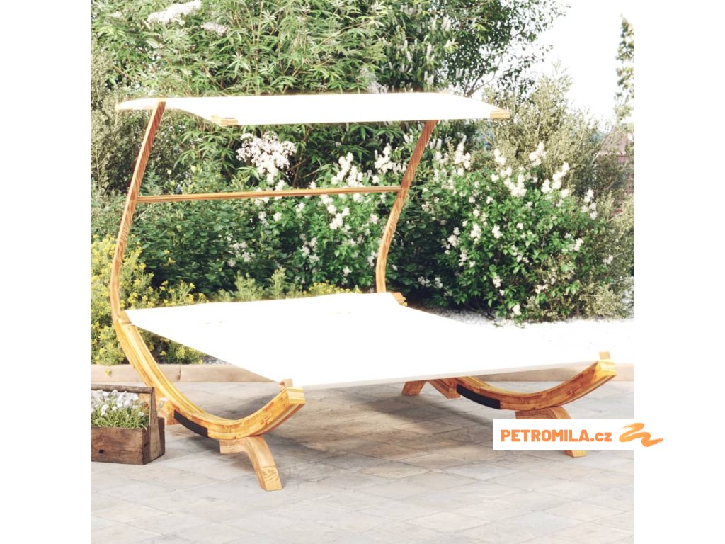 Zahradní lehátko a stříška 165x203x138 cm ohýbané dřevo krémové