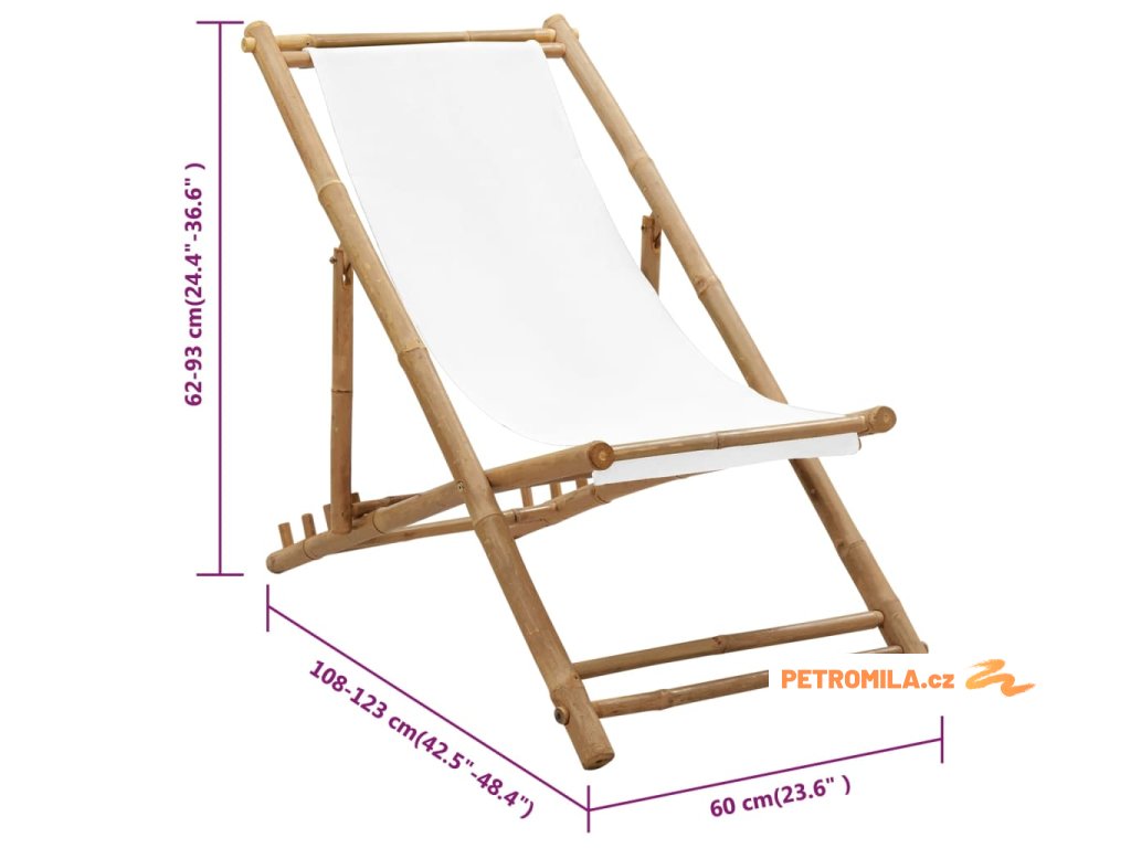 Toto lehátko je vyrobené z vysoce kvalitního bambusu, pro které je charakteristická odolnost vůči povětrnostním vlívům a dlouhá životnost. Židli lze nastavit do 4 poloh, což vám poskytne větší pohodlí. Plátno zajišťuje maximální pohodlí. Pokud židli právě nepoužíváte, můžete ji složit a uskladnit.