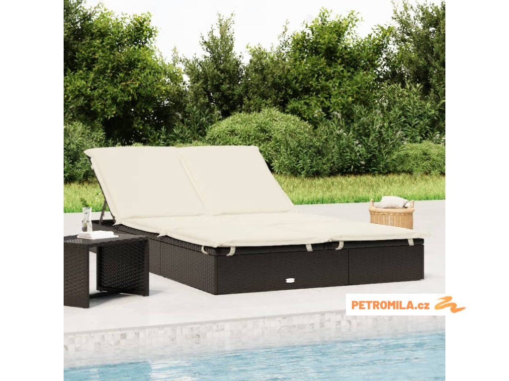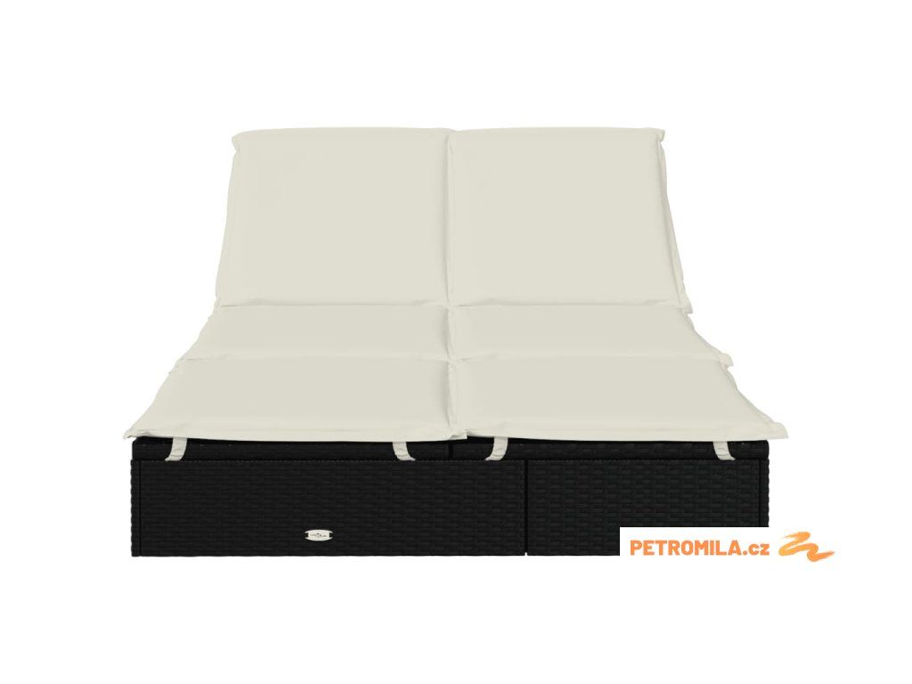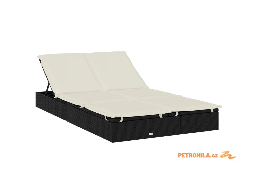 Zahradní lehátko pro 2 osoby s poduškami černé polyratan