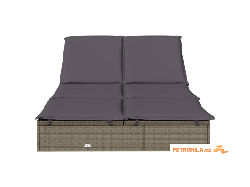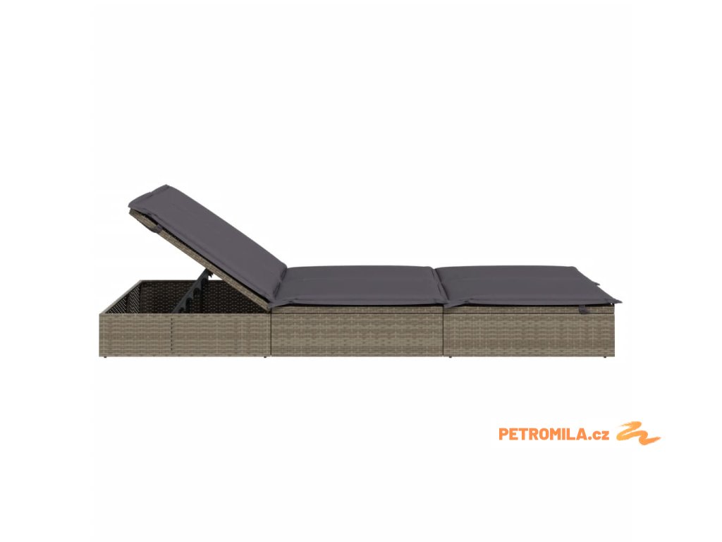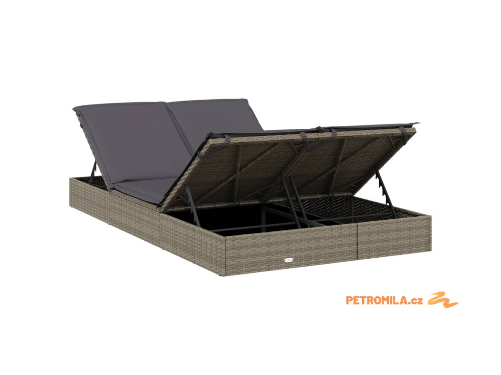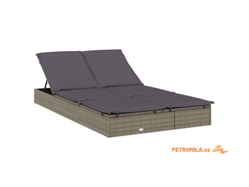 Zahradní lehátko pro 2 osoby s poduškami šedé polyratan