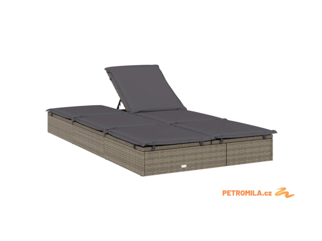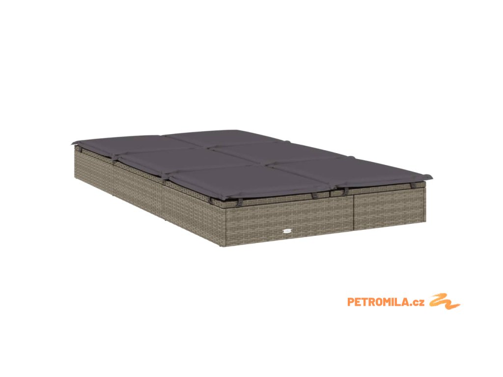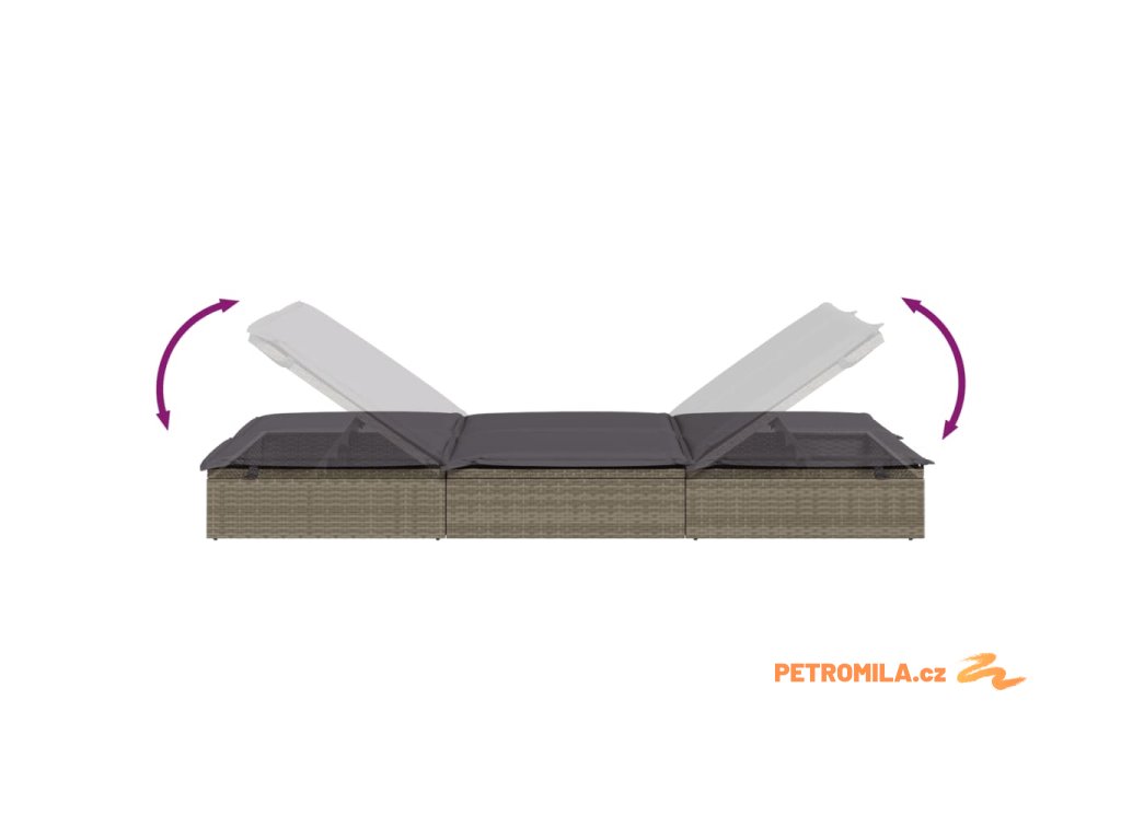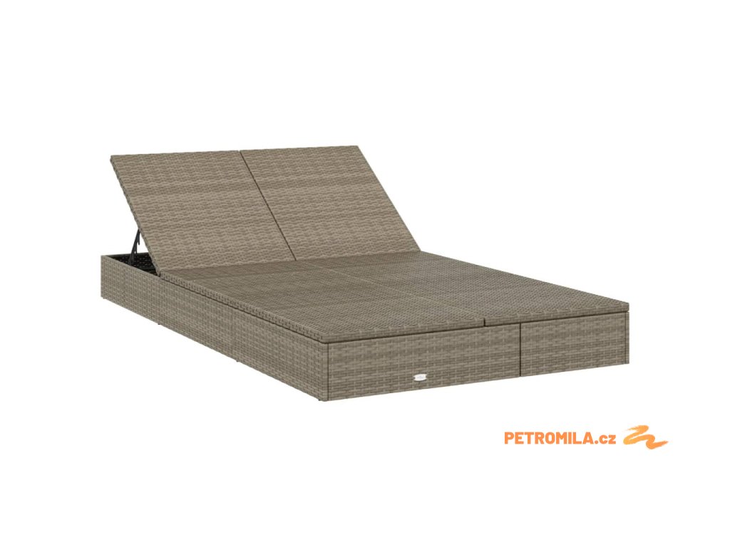 Zahradní lehátko pro 2 osoby s poduškami šedé polyratan