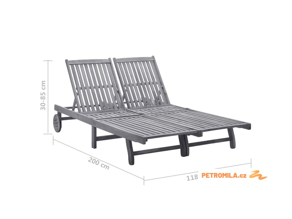 Zahradní lehátko pro 2 osoby s poduškou šedé masivní akácie
