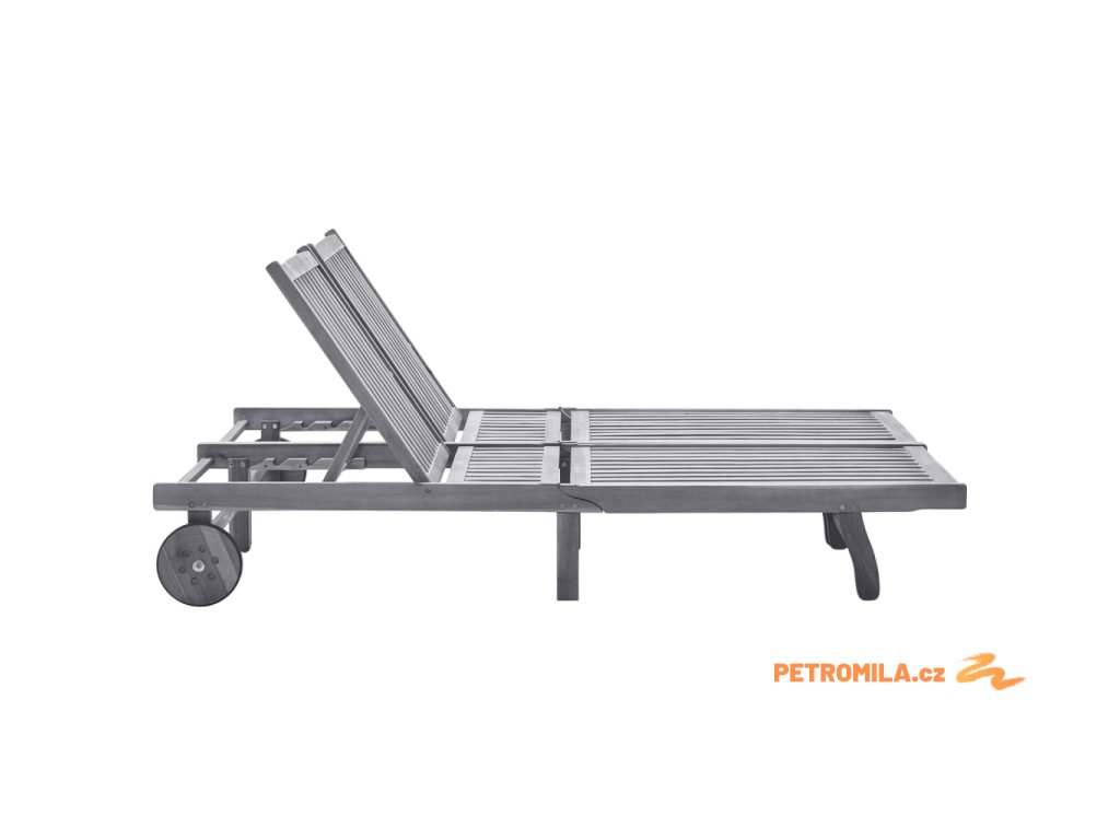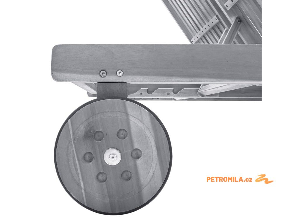 Zahradní lehátko je vyrobené z masivního akáciového dřeva s šedou povrchovou úpravou, takže je robustní a stabilní. Opěrky zad a nohou jsou polohovatelné a můžete si je snadno nastavit do požadované pozice. Opalovací lehátko se 2 kolečky bez námahy přemístíte, kam zrovna potřebujete. Poduška přispívá k optimálnímu komfortu během vaší relaxace.