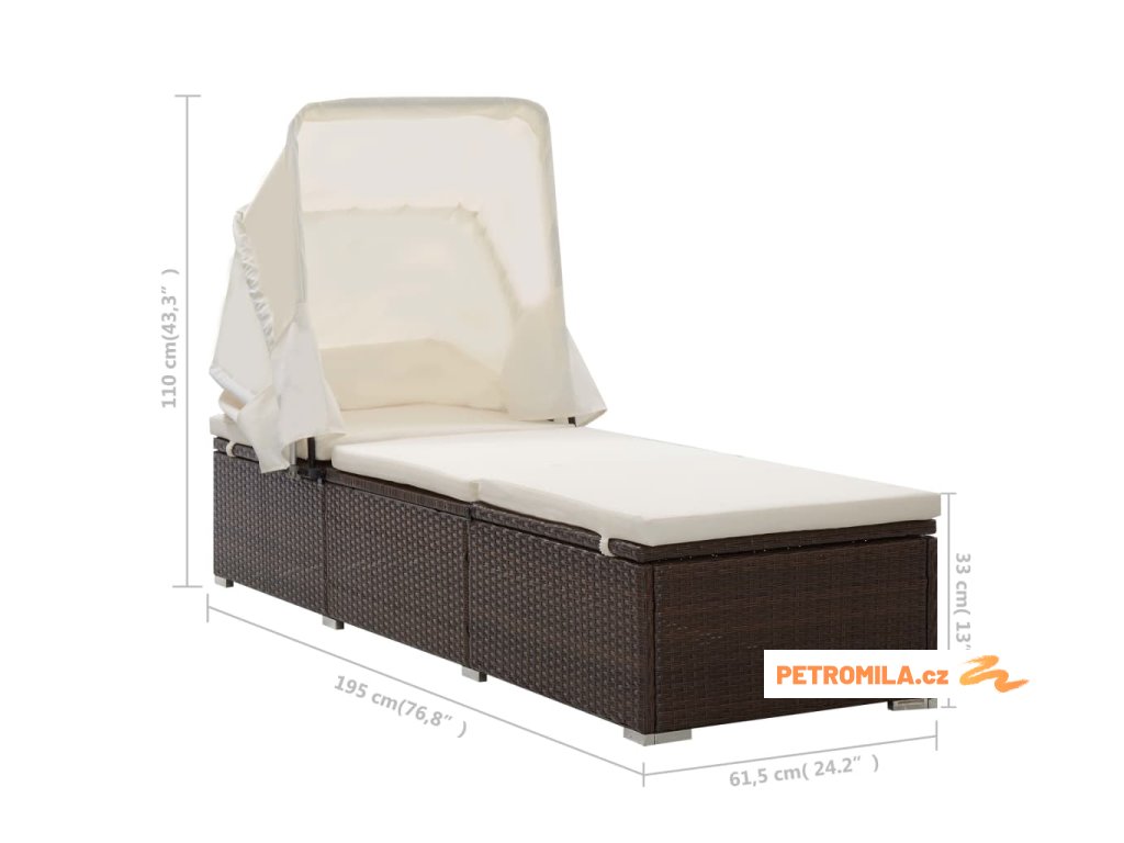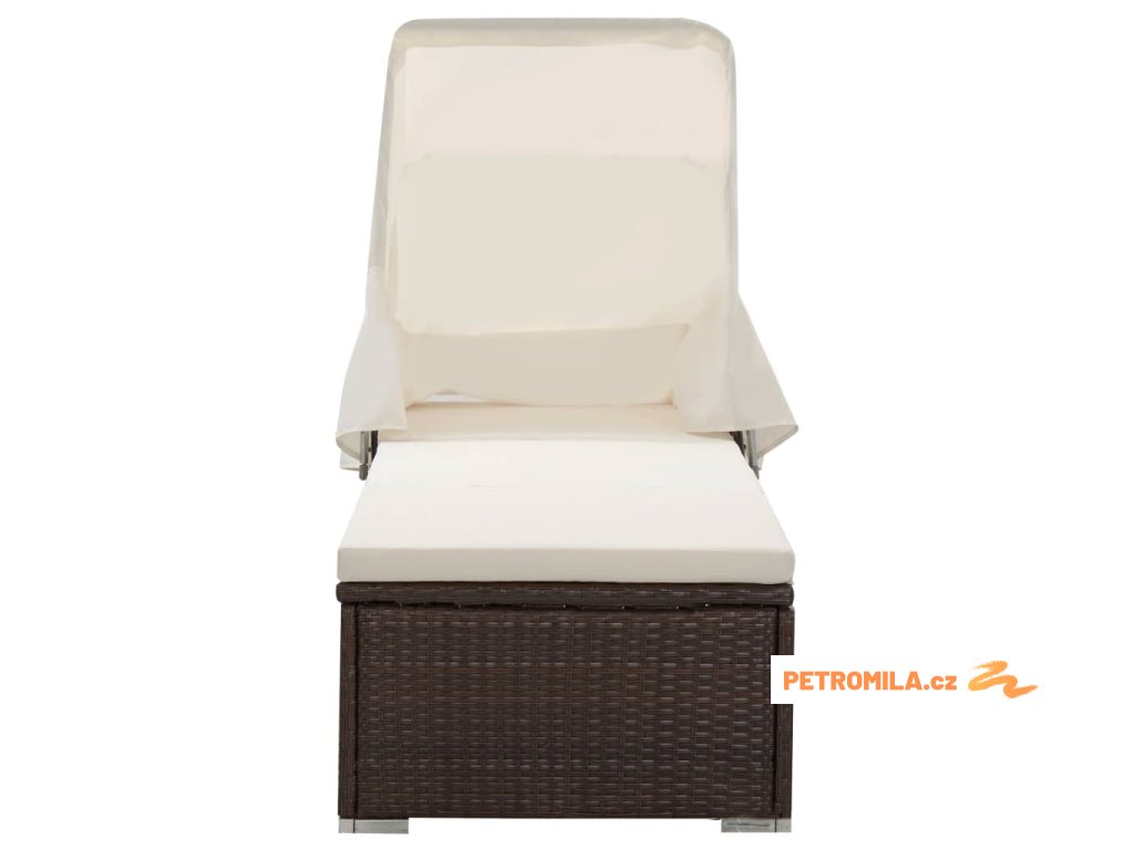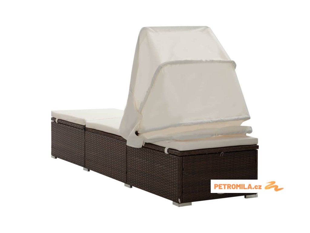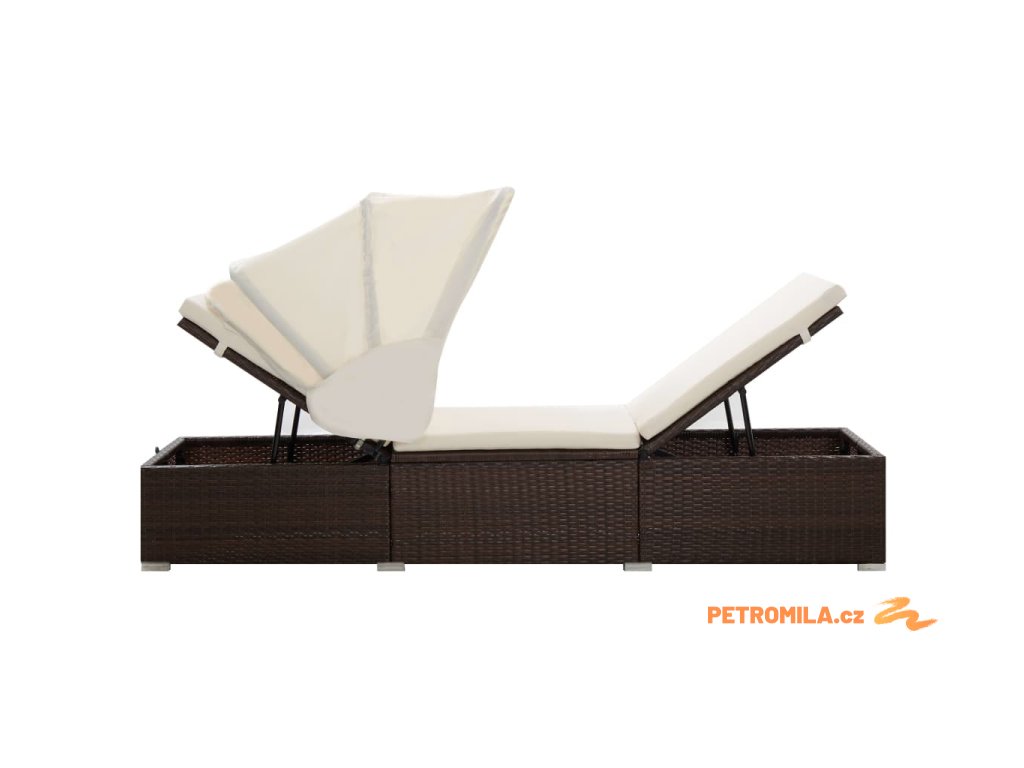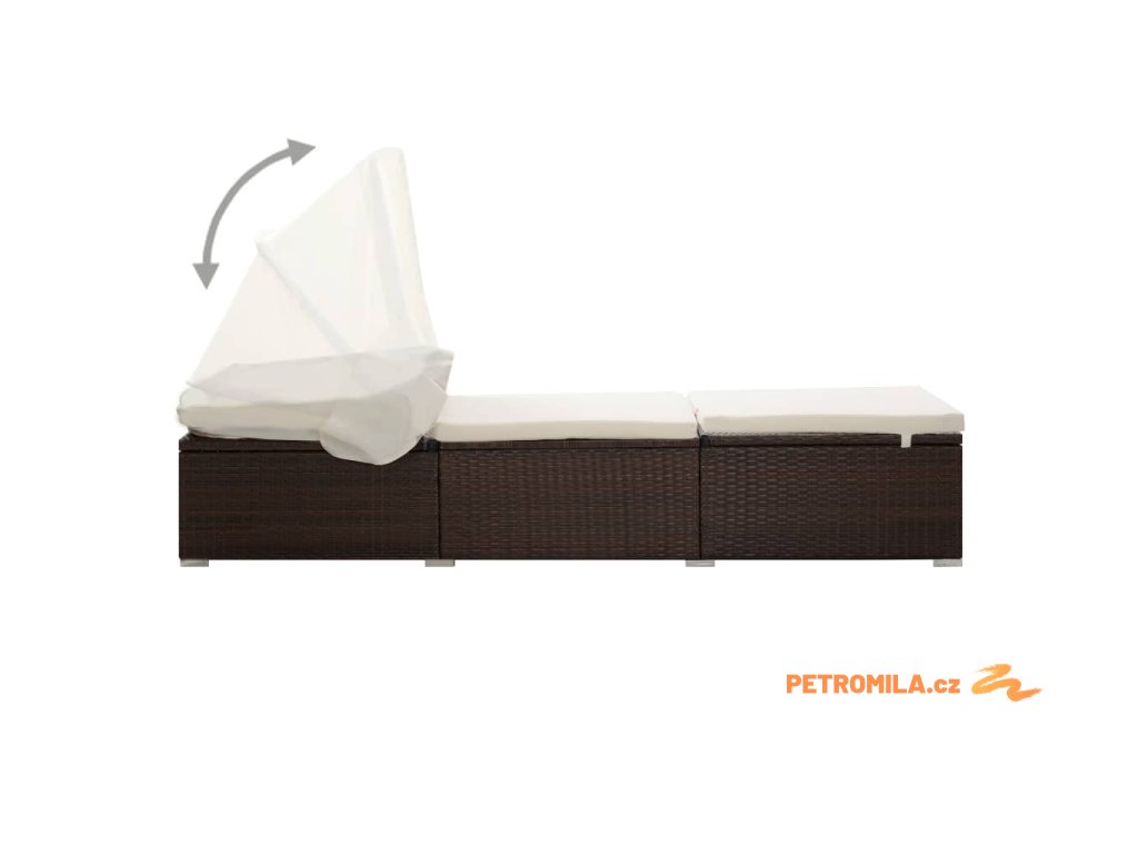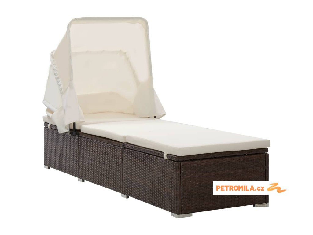 Zahradní lehátko s baldachýnem a poduškou polyratan hnědé