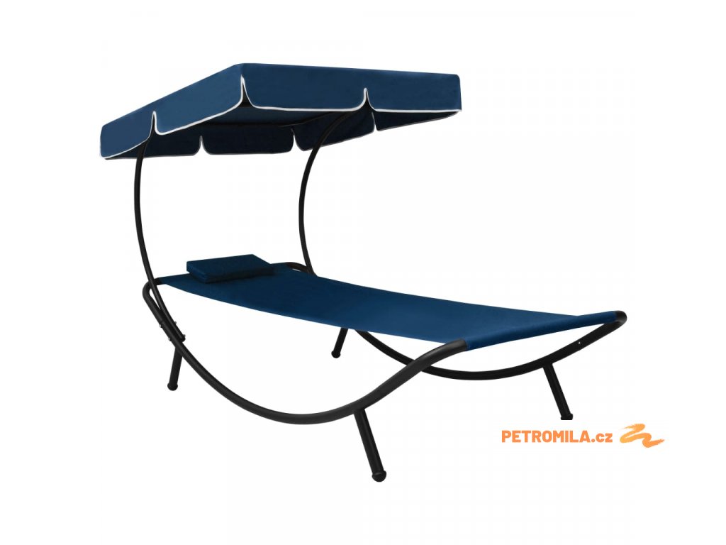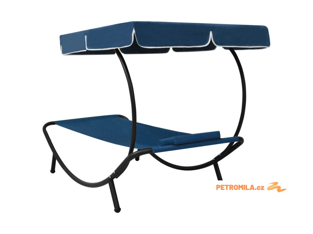 Zahradní lehátko s baldachýnem a polštářem modré