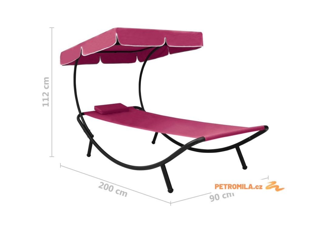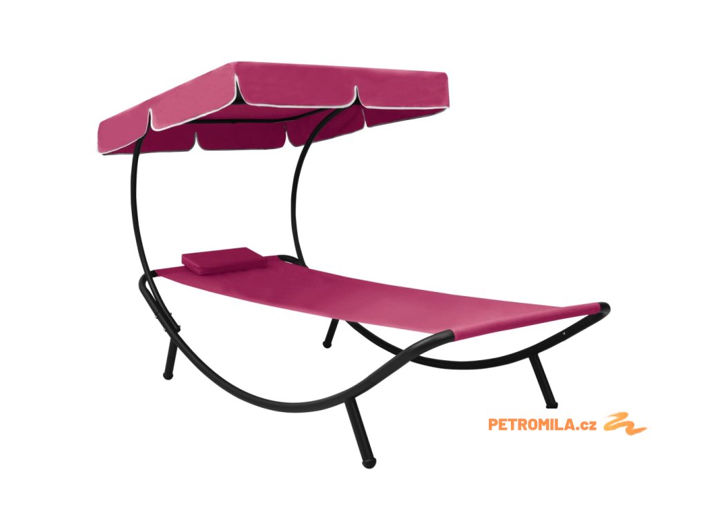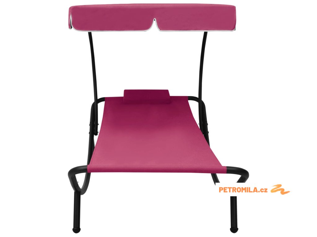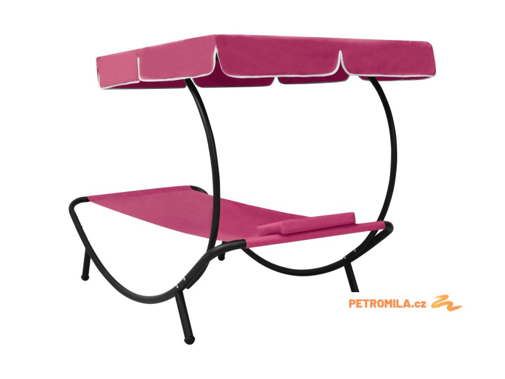 Zahradní lehátko s baldachýnem a polštářem růžové