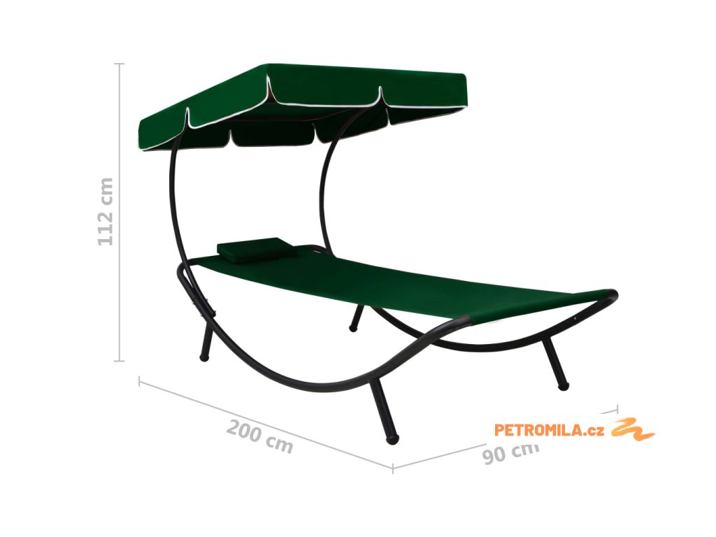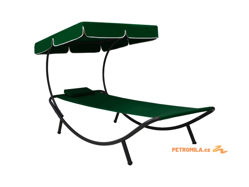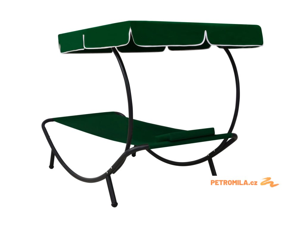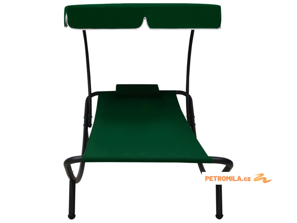 Zahradní lehátko s baldachýnem a polštářem zelené
