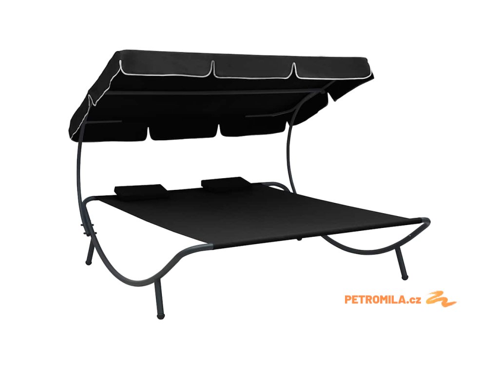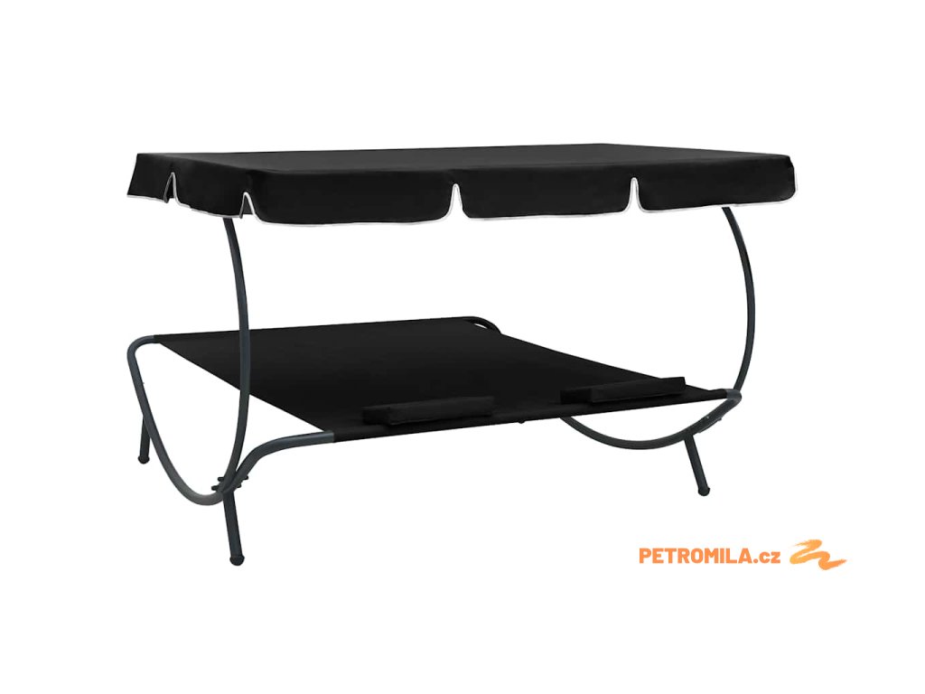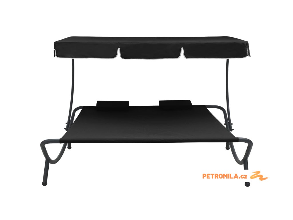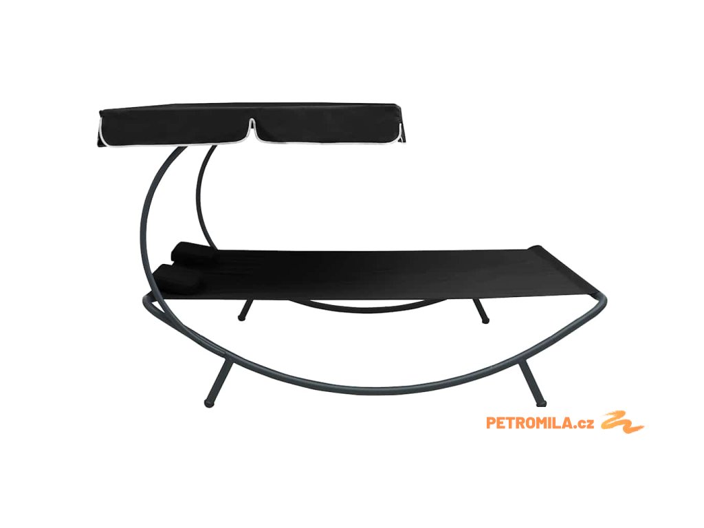 Zahradní lehátko s baldachýnem a polštáři černé