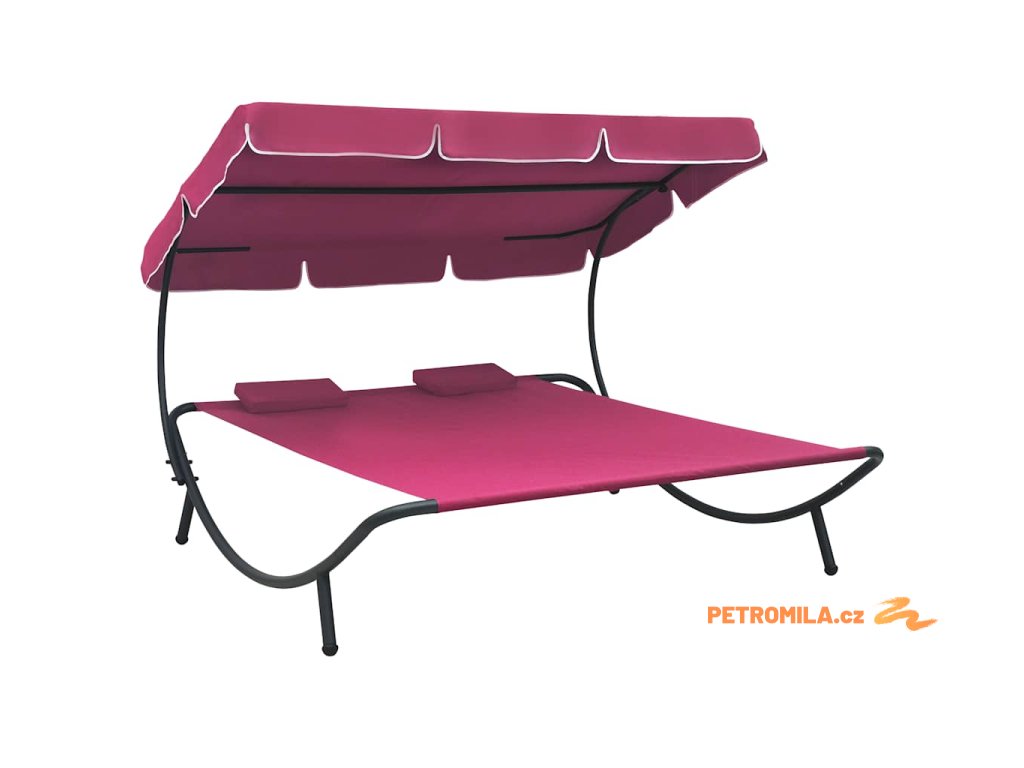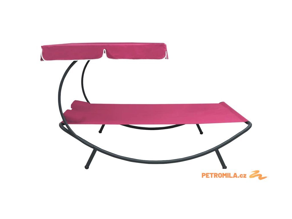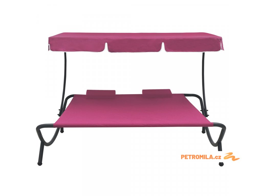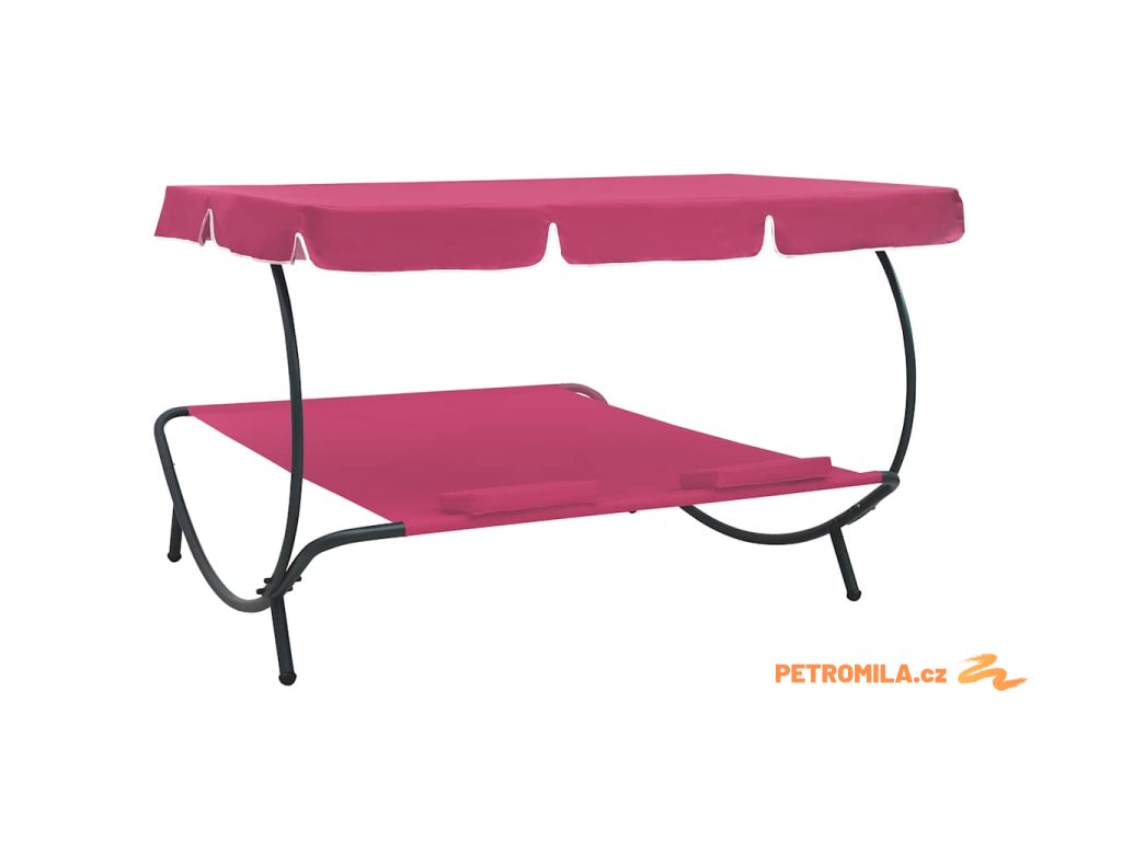Zahradní lehátko s baldachýnem a polštáři růžové